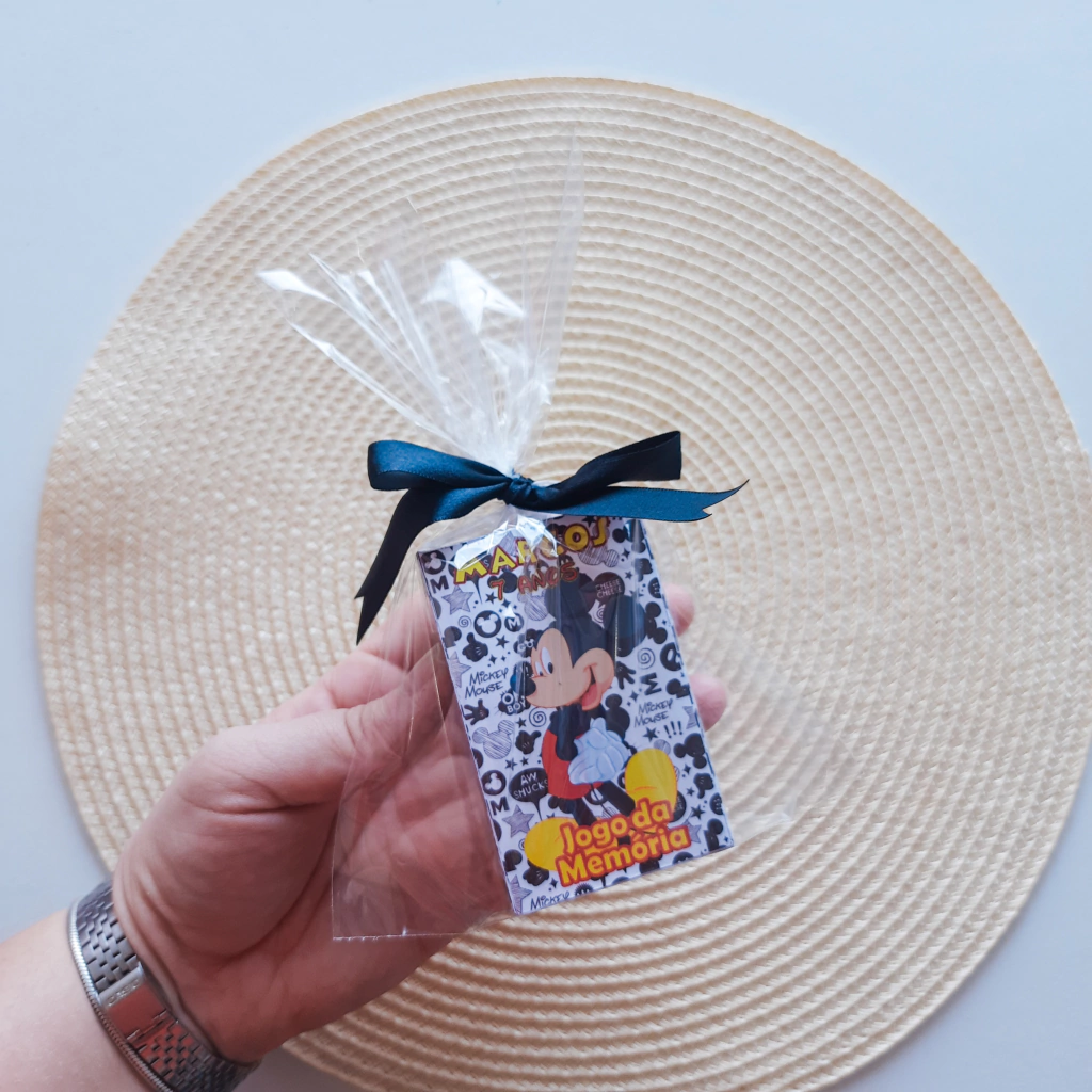 Se você está em busca de um jogo da memória personalizado, temos a solução perfeita para você! Apresentamos um jogo da memória incrível, que certamente vai encantar crianças e adultos. Com ele você garante diversão, entretenimento e exercício mental, este jogo da memória é ideal para estimular a memória e a concentração. - Confeccionado em papel offset 180g, garantindo durabilidade e resistência. - Impressão em alta resolução, proporcionando imagens nítidas e cores vibrantes. - Não desbota com o tempo, permitindo que você desfrute do jogo por muito mais tempo. - O jogo conta com 18 cartas personalizadas frente e verso, todas elas seguindo o tema escolhido. - Cada carta possui dimensões de 6 cm de altura por 5 cm de largura, proporcionando um manuseio confortável. - Já vai embalado e pronto para entregar para o seu convidado. Não perca a oportunidade de adquirir este jogo da memória personalizado de alta qualidade! Seja para presentear seus convidados ou para aproveitar momentos divertidos em família, este jogo é a escolha perfeita. Com a garantia de durabilidade, alta resolução e cartas personalizadas, você terá um jogo que irá entreter e desafiar a mente de forma única. Aproveite agora mesmo e adquira o seu! A arte das peças é idêntica a foto. Mudamos apenas nome e idade da criança. Os laços variam a cor de acordo com a paleta de cor do personagem. Personalizamos em qualquer tema. Se não achou o seu tema, entre em contato pelo chat.